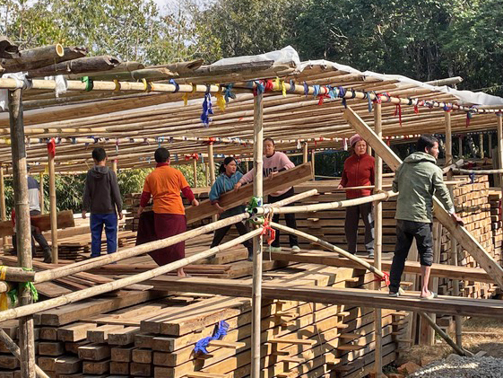 Although many members of the LDSTC community are busy with various professional and social engagements, continuous efforts are being made to support the construction of the wooden temple. On Sundays, people come together to help lay the foundations, carry wooden trunks to the wood store, maintain the site, cook for the workers... . It is a meaningful activity which is often also a lot of fun.